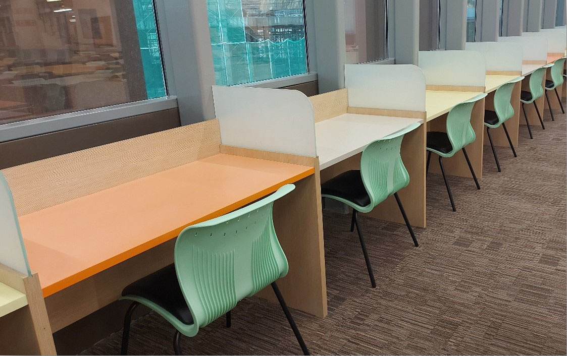 There are 12 individual study carrels available, designed to offer users a quiet and private environment for focused study.